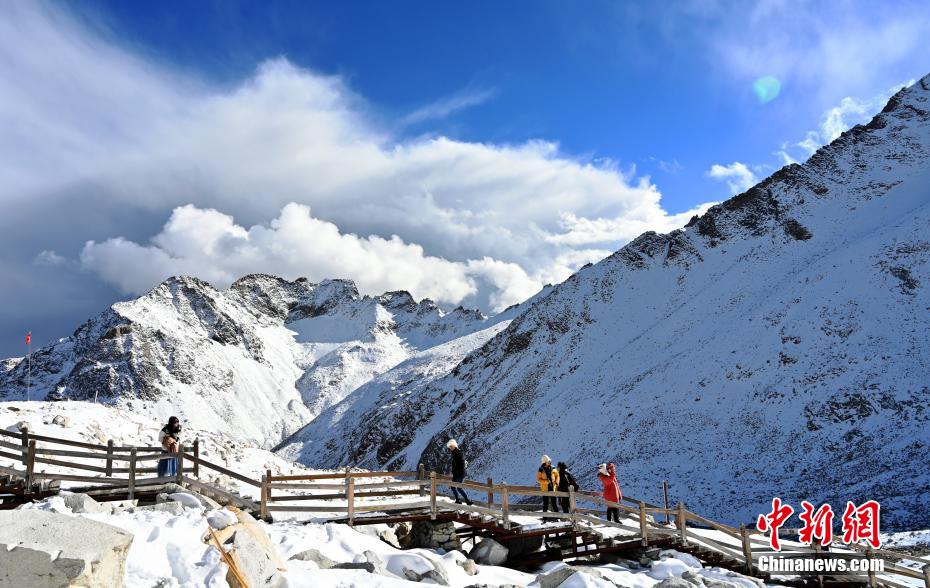 四川阿壩州:金黃云杉點綴白雪 小金瑪嘉溝秋色正濃